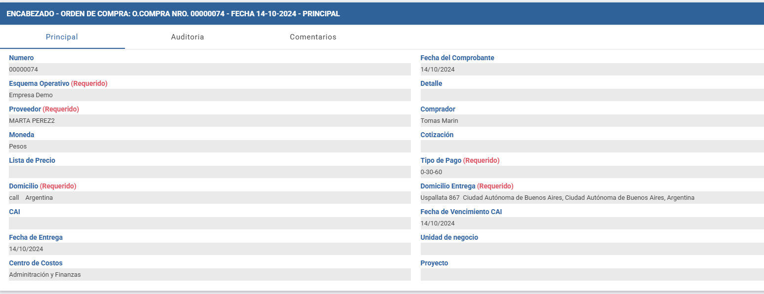 La Orden de Compra se utiliza para registrar una solicitud de compra a un proveedor determinado y es una transacción opcional, no es obligatoria, ya que el circuito de compras puede comenzar directamente desde la Factura de Compra, según las necesidades de la organización.