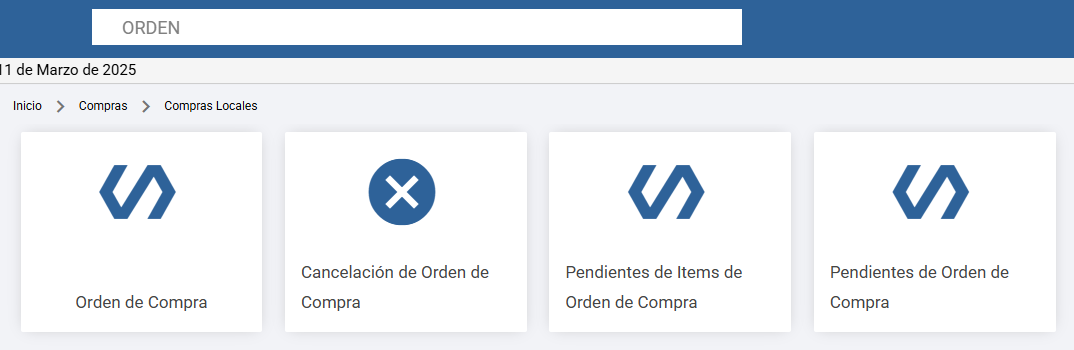 Se accede desde la carpeta Compras > Compras Locales, que contiene las siguientes subcarpetas: