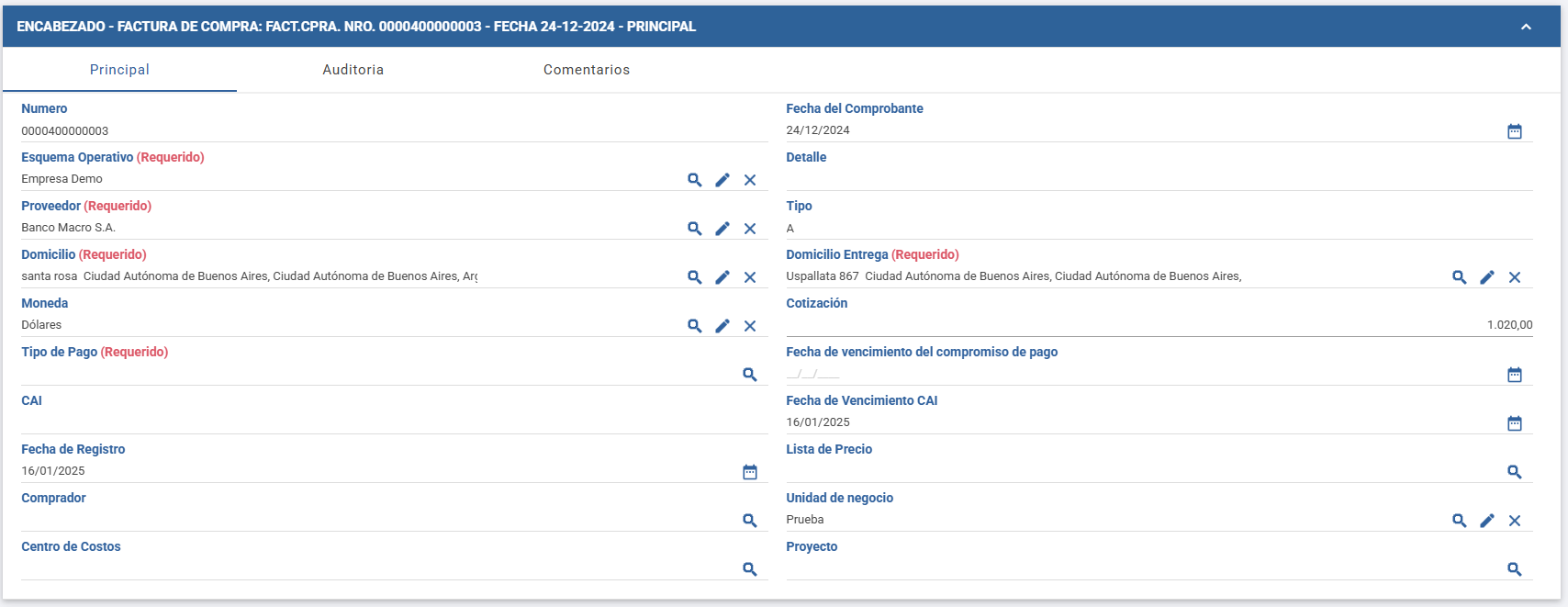 Generar una Factura de Compra