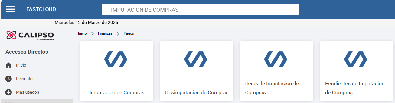 - Pendientes de Imputación de Compra: para generar la transacción desde pendiente.