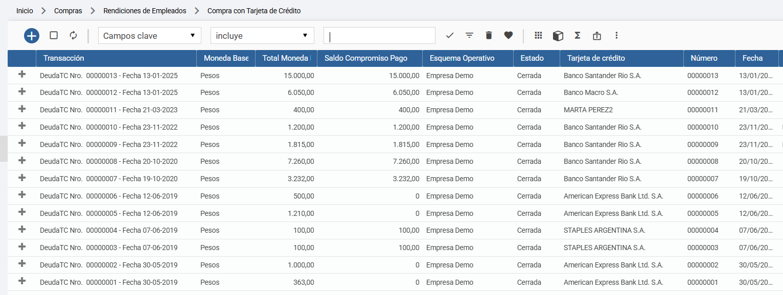 • Listar las deudas de una Tarjeta de Crédito en particular, utilizando el filtro de la barra de búsqueda.