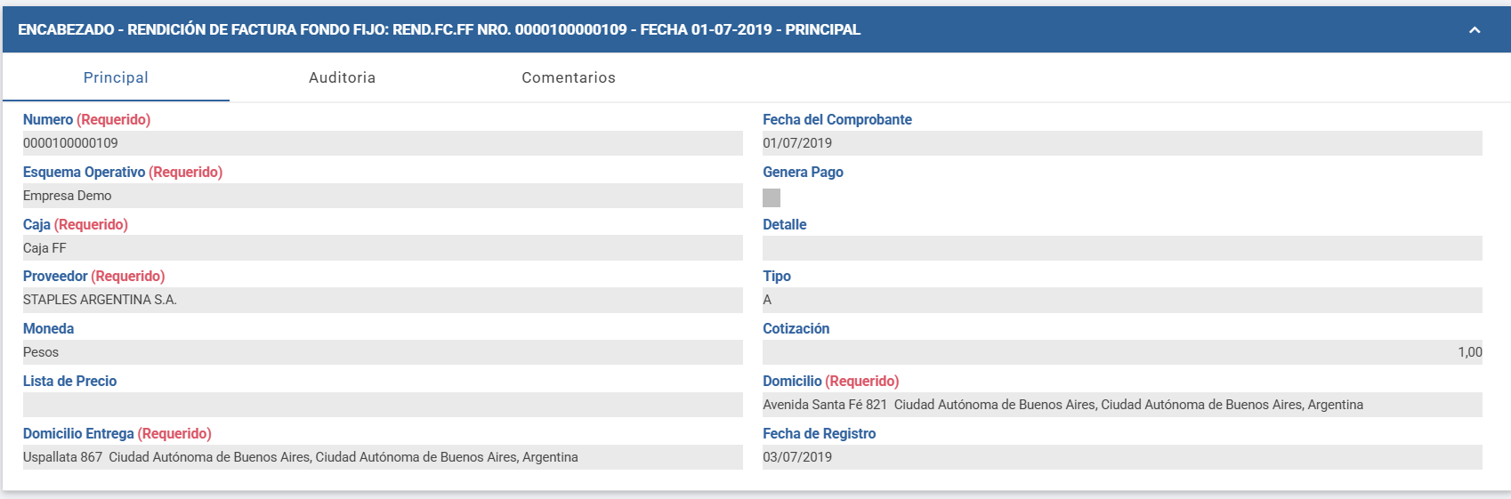Nota: existen dos rendiciones de factura distintas, una corresponde al circuito de Fondo Fijo y otra al circuito de Rendiciones de Empleado.