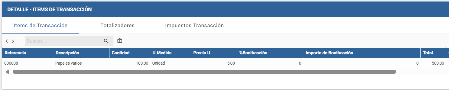 5. En la sección Detalle, completar los campos correspondientes a los ítems que hayan sido registrados en la factura a rendir. Utilizar el botón "+", para sumar una fila por cada referencia a incorporar.