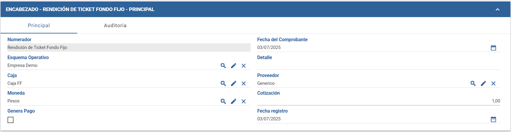 - Caja: caja de Fondo Fijo a la que corresponde la rendición.