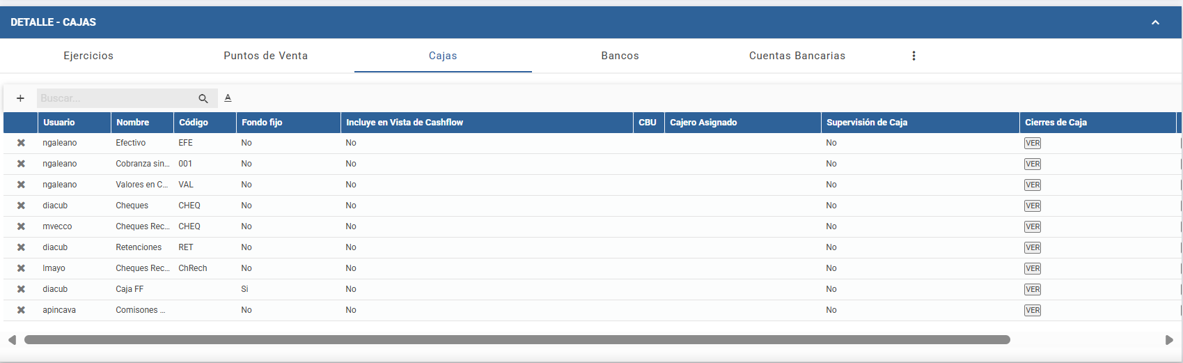 7. Aceptar, para guardar la configuración realizada. El sistema regresará a la vista del maestro Cajas.