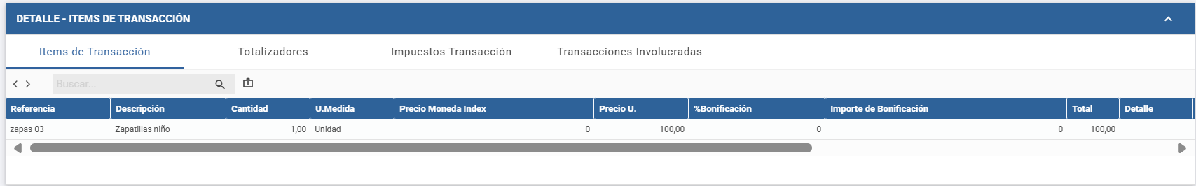 - En la solapa Impuestos, se detallan los impuestos calculados para este ítem, mostrándose el IVA.