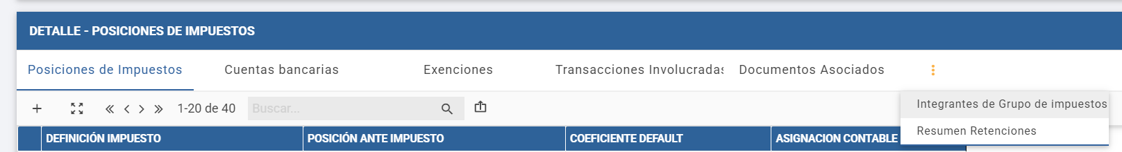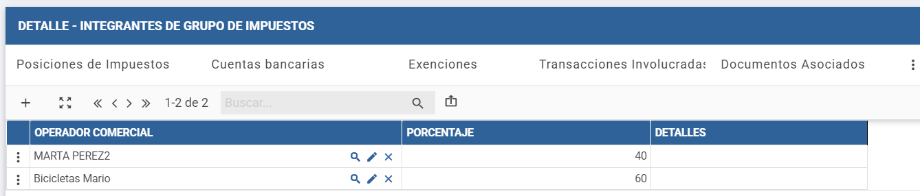 3. En la sección Detalle, habilitar la solapa "Integrantes de Grupo de Impuestos":