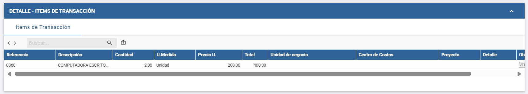 DebeConceptoAsigna la cuenta contable “Compras”, asignada a cada concepto facturado por el importe del ítem.