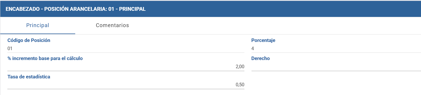 Estas posiciones son esenciales para informar todas las posiciones aduaneras del producto importado y deben configurarse previamente en el sistema.