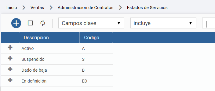 2. Crear un nuevo registro por cada posible estado del Contrato, usando el botón "+".