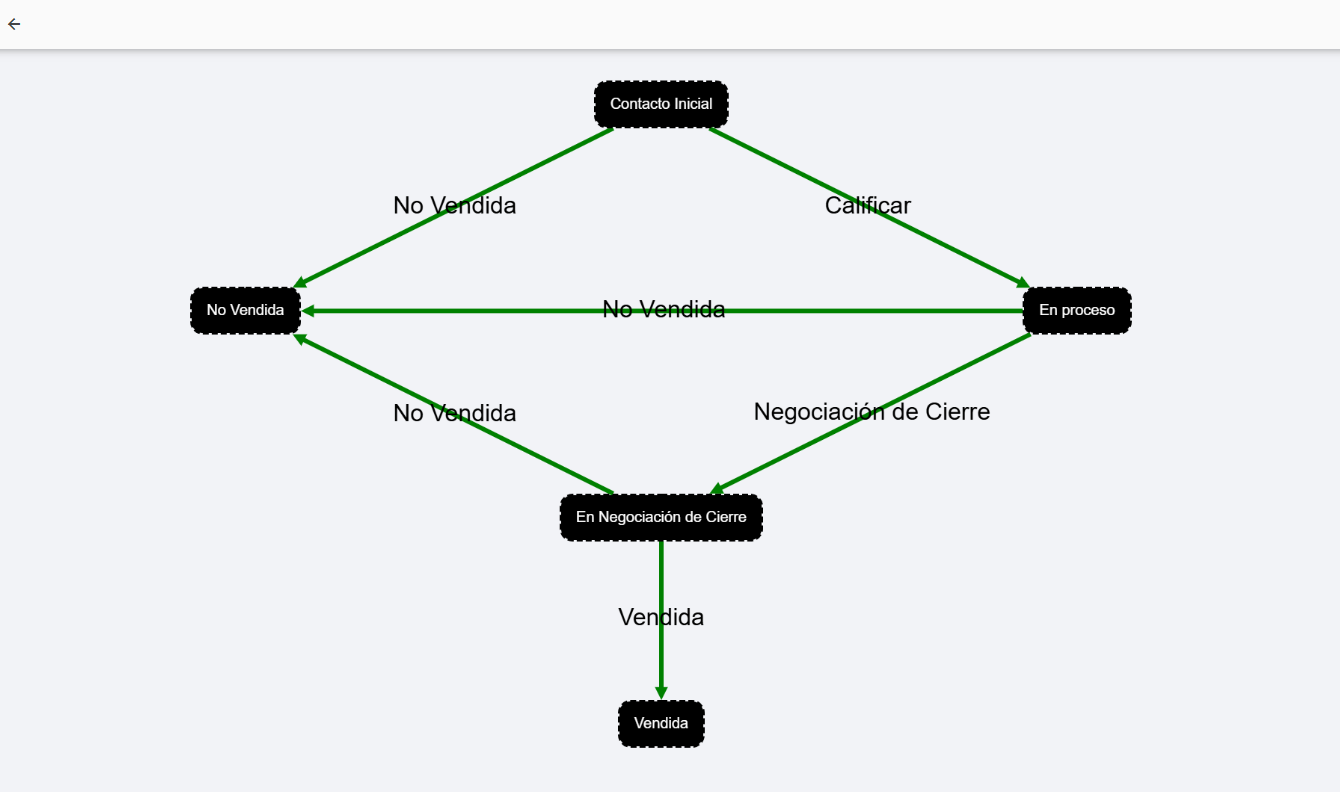 - No Vendida: estado final si la venta no se concreta. Se puede pasar a este estado desde cualquier otro (excepto "Vendida").