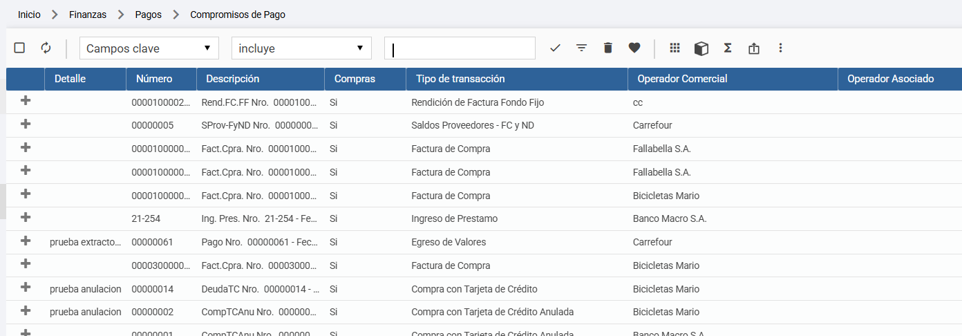 Se accede desde la carpeta Finanzas > Pagos > Compromisos de Pago.