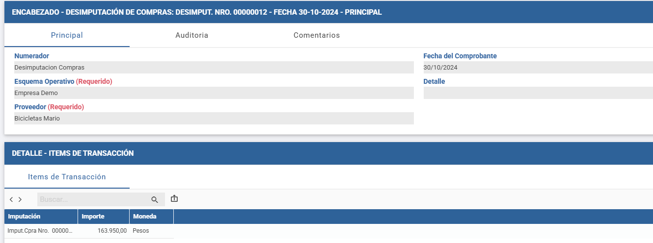 La Desimputación de Compras se utiliza para cancelar manualmente una Imputación de Compras.