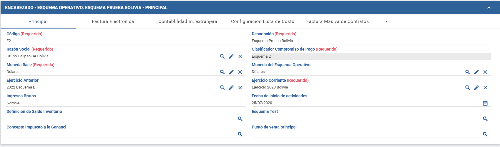 - Configurar el Esquema Operativo indicando ejercicio anterior y ejercicio corriente.