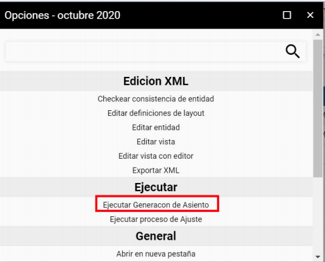 ● Asiento generado: Se completará automáticamente una vez ejecutado el proceso y asiento correspondiente al mismo.