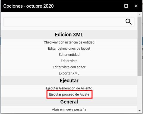 ● Ejercicio contable : Ejercicio contable donde se incluye el periodo a ajustar.