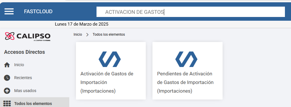 - Ubicación: carpeta Compras > Importaciones > Pendientes de Activación de Gastos de Importación
