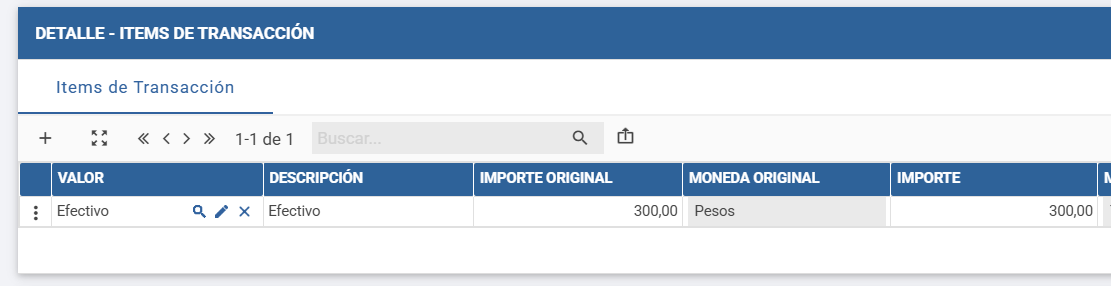 2. Al finalizar la acción, la transacción se mostrará en Estado y Flag Cerrada.