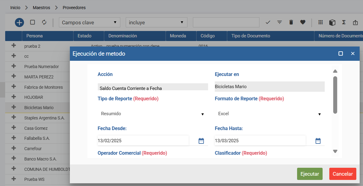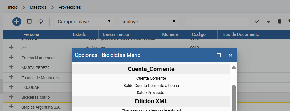 En este caso, se refiere al botón de acciones ubicado en el maestro Proveedor, y/o Cliente que permite ver la Cuenta Corriente del Proveedor y/o cliente y emitir los Saldos correspondientes.