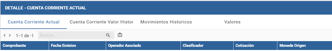 - Cuenta Corriente Actual: es el detalle de comprobantes pendientes a valor actual e incluye los comprobantes que no están imputados. Los comprobantes en moneda extranjera se mostrarán según la última cotización ingresada para tal moneda.