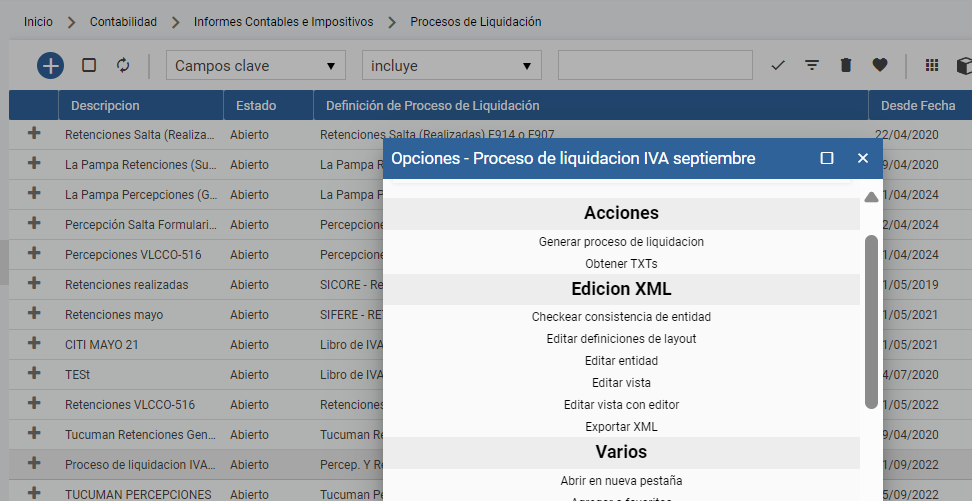 1. Ingresar a la carpeta Procesos de Liquidación, desde: Contabilidad > Informes contables e impositivos.