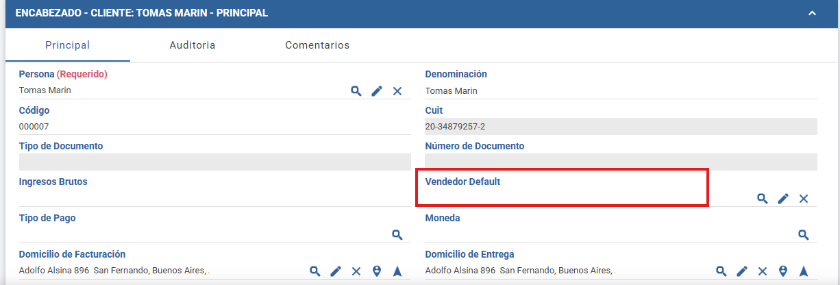 - Código: asignar el código que identificará al Vendedor.