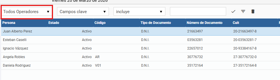 - Persona: seleccionar la Persona Física previamente cargada, usando la lupa. Al hacerlo, se autocompletarán los datos asociados de CUIT, Tipo y Nro. de Documento.