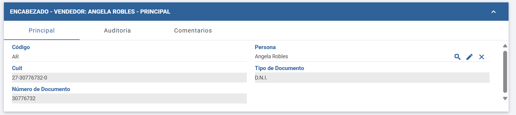 Nota: en caso de no haberla cargado previamente, puede crearla directamente desde el botón "+" que se encuentra en el campo "Persona" del registro de Vendedor.