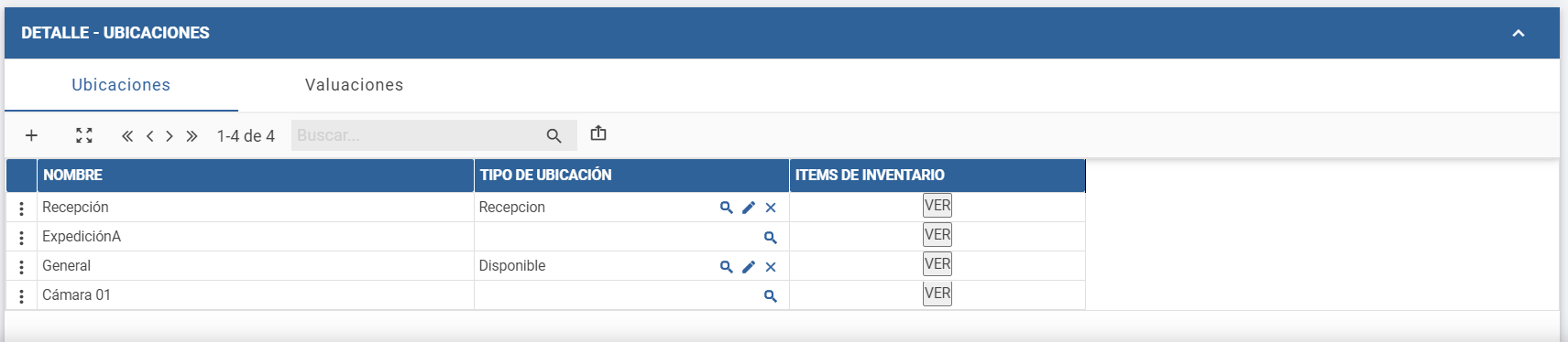 5. En la sección Detalle, indicar las subdivisiones que contiene la ubicación principal del depósito. Utilizar el botón (+), para sumar una fila por cada ubicación a incorporar.