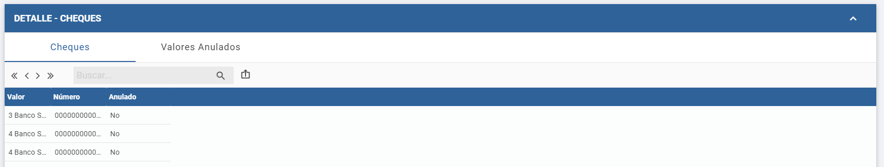 4. Ir a la sección Detalle y, en el listado, buscar el Cheque a anular y hacer doble click sobre el mismo.