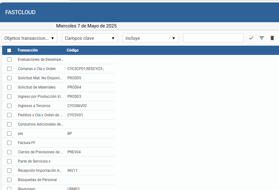 - Utilizar la herramienta "+", para seleccionar todos los que correspondan del listado de transacciones que se desplegarán (son aquellas en las cuales se puede utilizar una imputación contable).