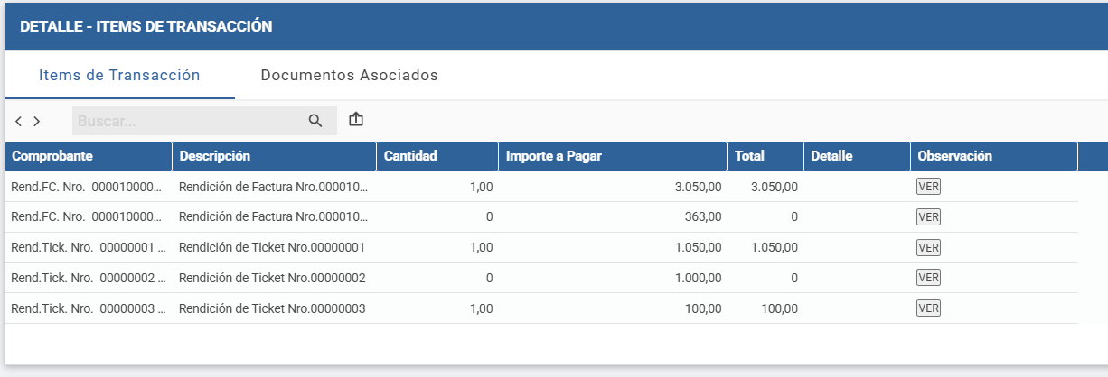 Es importante recalcar que esta transaccion es posterior a la carga de Rendición Factura y Rendición tickets