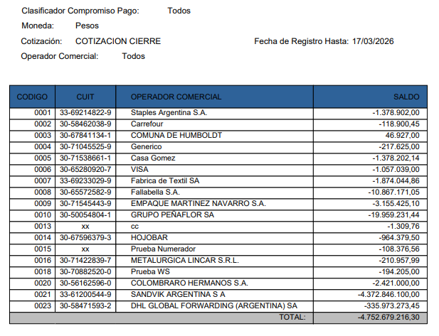 - Detallado: muestra los comprobantes pendientes.