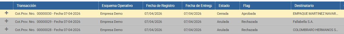 Aprobar la cotización seleccionada (el estado cambiará a "Cerrada" y el flag a "Aprobada").