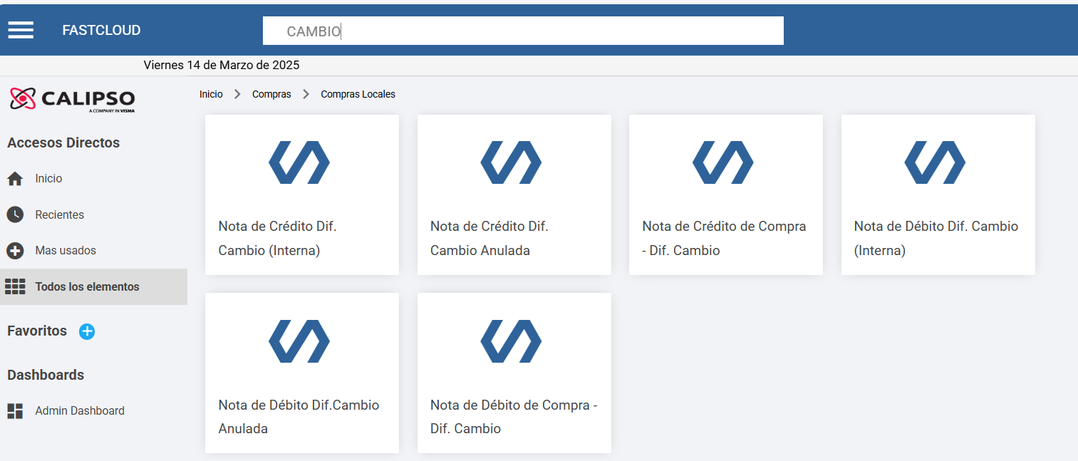 En todos los casos, se accede desde la carpeta Compras > Compras Locales > Carpeta de la transacción que corresponda.
