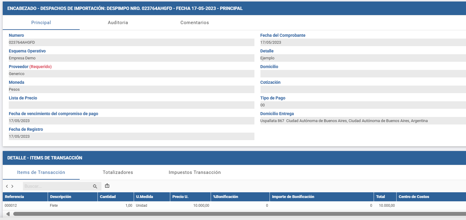 Esta transacción permite cancelar por concepto de impuesto, la mercadería adquirida. Es un documento que se entrega al servicio aduanero, donde en general se declaran los tipos de productos y posición arancelaria; o, como en el caso de Corporate, los impuestos relacionados a la importación.