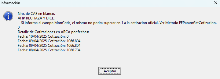- Si no coincide, el sistema mostrará la cotización informada en ARCA.