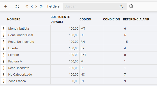 En el Impuesto de IVA, configurar cada Posición en el campo "Referencia AFIP", con la siguiente información: