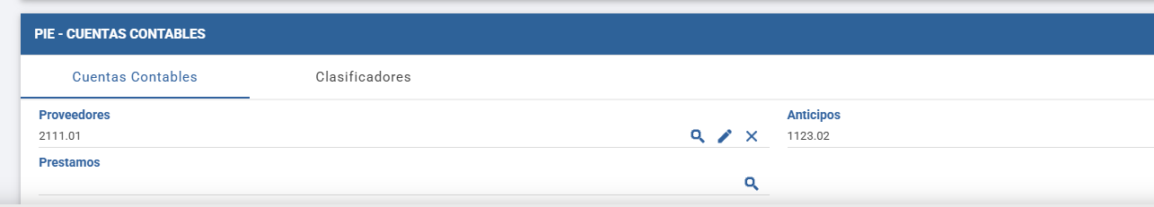 3. En el pie del formulario, asignar las cuentas contables, según las referencias que se detallan en el  apartado "Cuentas Contables a asignar".
