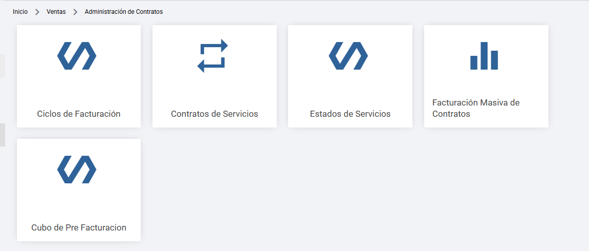 Es el punto de partida del proceso, en que se definen y registran todas las condiciones de operación con el cliente. La correcta configuración en el alta del Contrato de Servicios, es fundamental para garantizar la generación automática de los comprobantes.