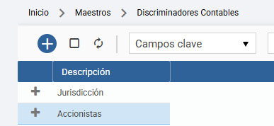Ubicación: se accede desde la carpeta Maestros > Discriminadores contables.