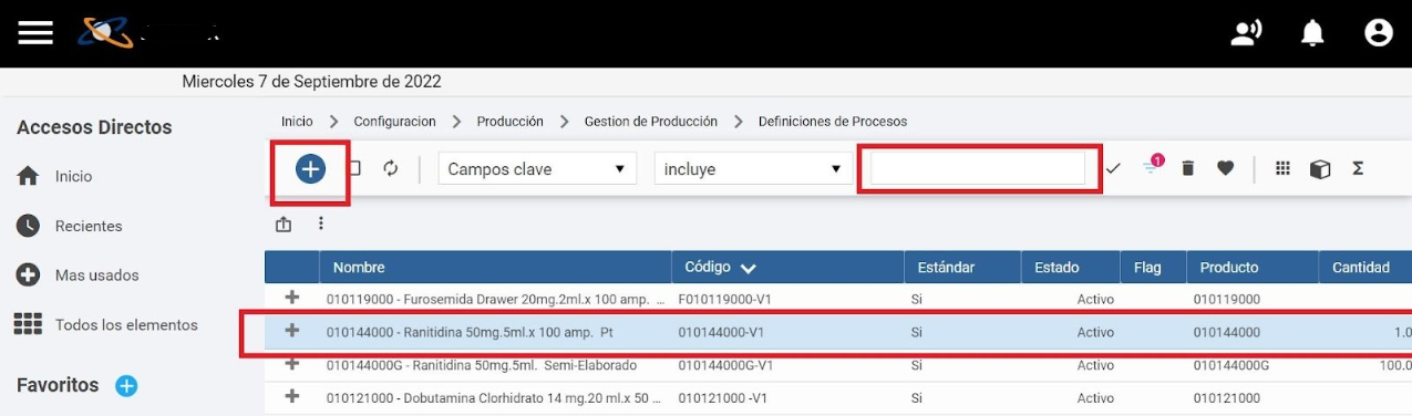 Cada fórmula o proceso productivo será identificado con un Código, para diferenciar las fórmulas originales y sus versionados. Y deben ser declarados en el sistema, como se explica a continuación.