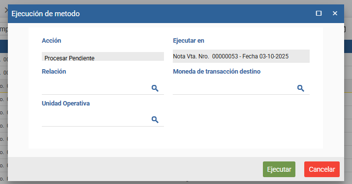 Esta funcionalidad incorpora la posibilidad de indicar explícitamente la moneda de la transacción destino al procesar pendientes mediante procesos por lote, permitiendo que dicha moneda sea distinta de la moneda de la transacción origen.