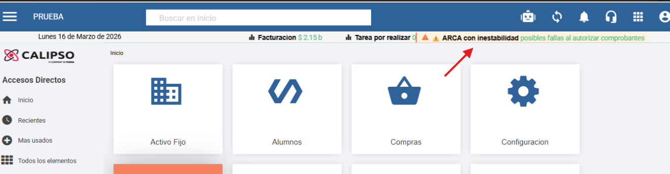- Si el servicio cae: Se despliega un indicador visual con la leyenda: > "⚠️ ARCA con inestabilidad: posibles fallas al autorizar comprobantes"