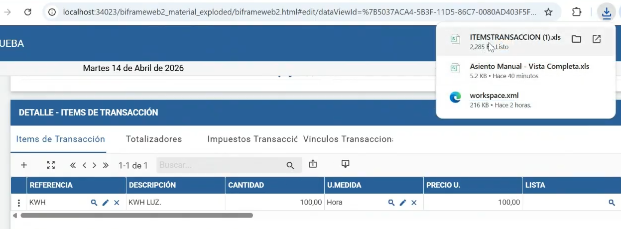 → Resultado esperado: El sistema generará automáticamente los ítems en la grilla.