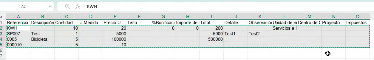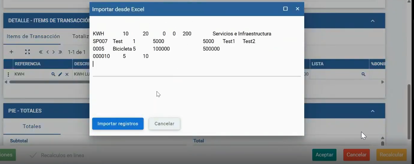 La importación ejecuta las mismas reglas de negocio que la carga manual, por ejemplo: